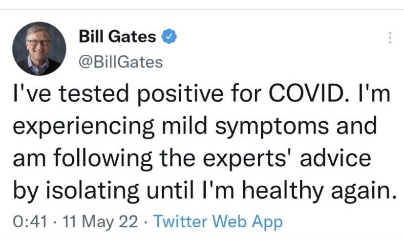 Aşı ve çip tartışmasının merkezindeki milyarder Bill Gates koronavirüse yakalandı. Kişisel Twitter hesabından durumu ile ilgili açıklama yapan Bill Gates, “COVID için pozitif test sonucum çıktı. Hafif semptomlar yaşıyorum ve tekrar sağlıklı olana kadar izole ederek uzmanların tavsiyelerine uyuyorum.” dedi.